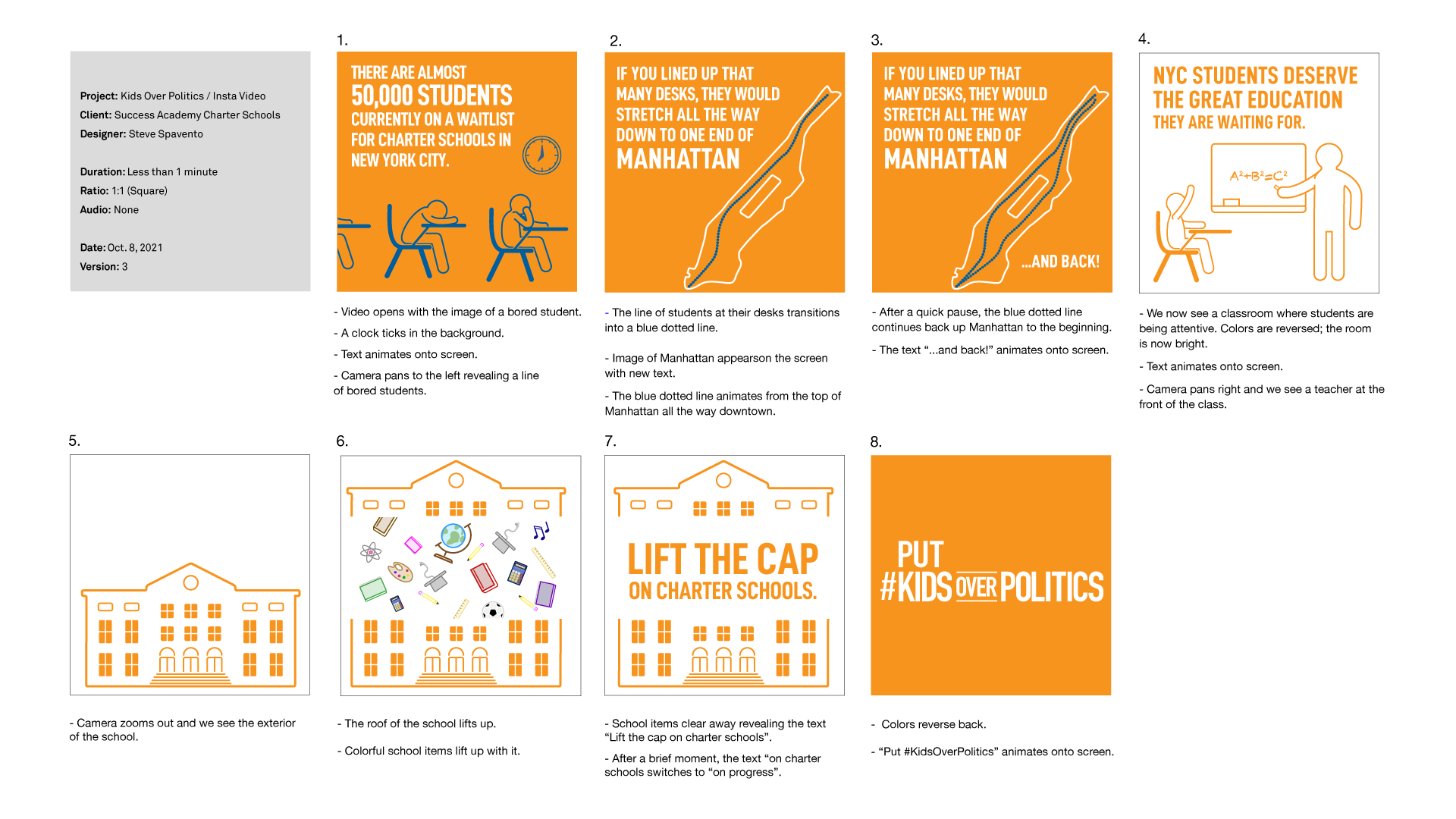 Created in partnership with Success Academy to advocate for New York City students. Assets were created using Illustrator, and animated with After Effects.